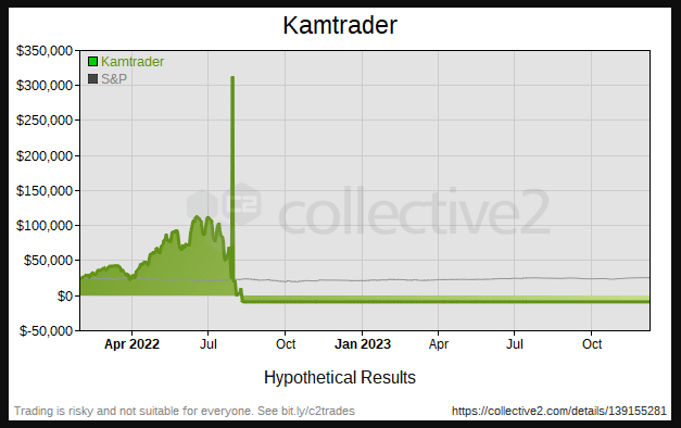 About 16 months ago, I reviewed the strategy Kamtrader which was pretty popular at the time. How did my predictions turn out? Back in July I wrote this blog post and posted this youtube video on Kamtrader. I was looking a the rather small number of YouTube videos I have made. Seeing the title I thought what has happened to Kamtrader, which I warned was very risky. I always want to see people do well, but I also don’t want to be crazy, wrong, or miss out on good opportunities. So how did I do. Well I just realized today that I already followed up on Kamtrader but forget. Whoops. I guess I’ll do it again. Maybe I will remember that I already followed up on it. See the chart below for more details on how it did.