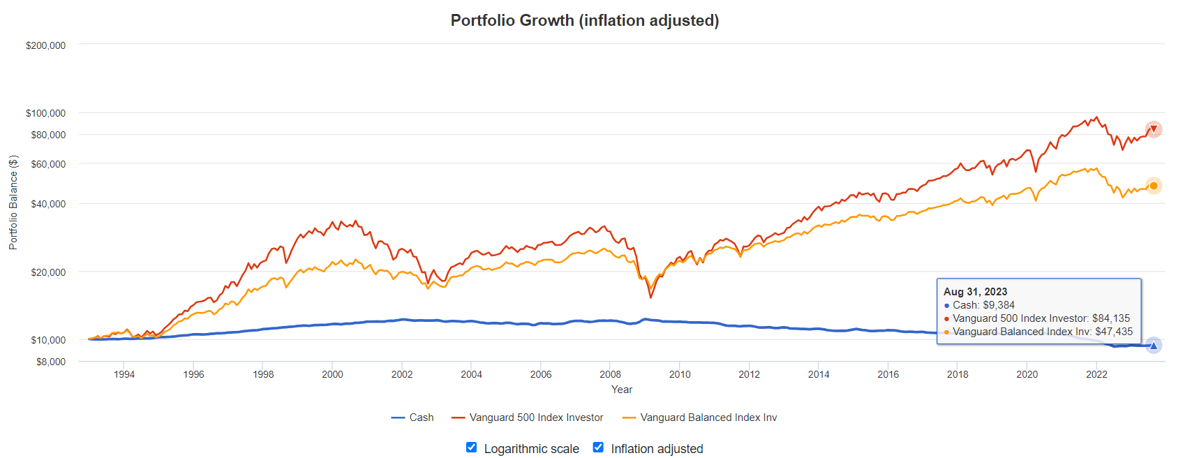 This period was unusually favorable for that strategy. If we look further back, we see that it would have gone bankrupt almost three times in the last few decades.