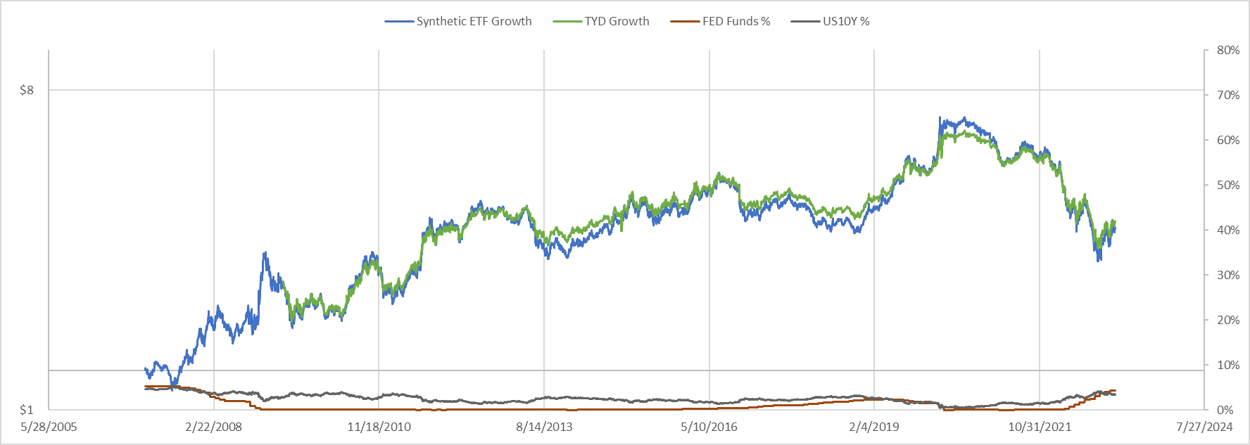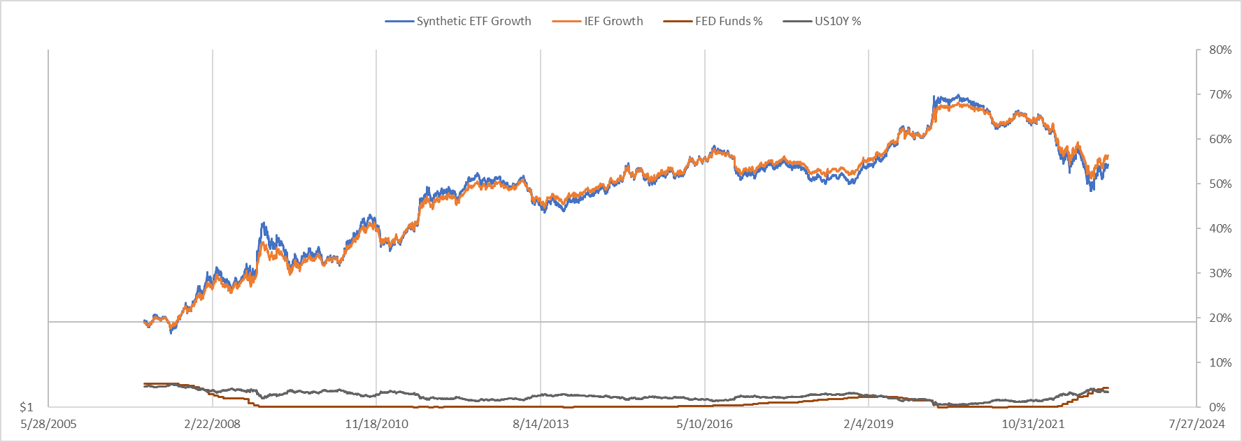 So far BITO a fund that uses Bitcoin futures to track the Bitcoin prices has performed very well. Sure it is down drastically since it started, but it is matching the price of Bitcoin very well as you can see in the image below or so it seems.