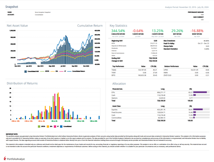 In short the market has a 184% return and I have a 344% return! The screenshot is from the PortfolioAnalyst tool provided by Interactive Brokers (IBKR), which remains my preferred broker.
