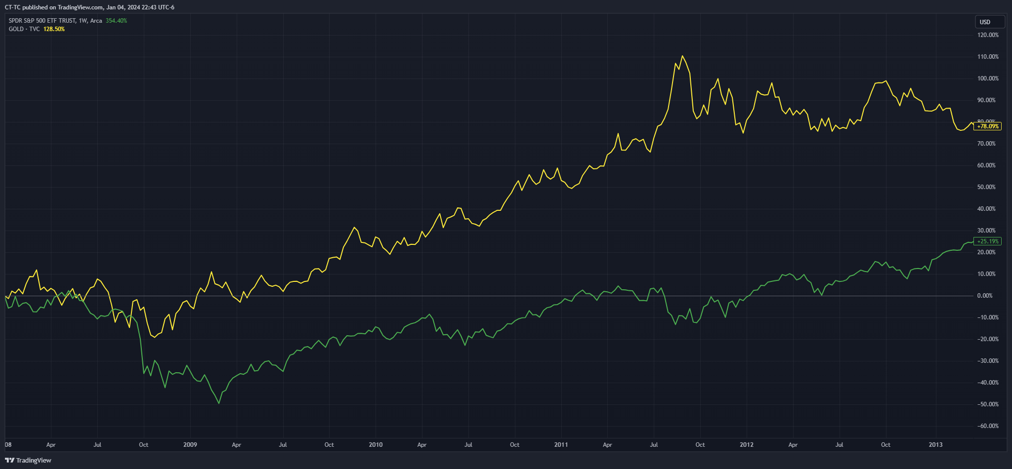 Now there are obviously ways to better utilize the 10-day sma and rotate into other assets etc. However, in general I believe there is this sweet spot. You don’t want to be a buy and hold investor with leverage, but you also don’t want to be a day trader with leverage. The downside of this sweet spot is that you will have days where you have sudden 5% drawdowns and on rare occasions larger than 10%. That just isn’t suitable for most people and that is okay. However, it is okay for me. Fortunately, I have been doing this long enough that I am able to roll with the punches. I didn’t really start trading this way until 2019, but once I did, I started to notice huge improvements. There is no covering up of the fact that 2022 was a rough year. But, in a longer-term context I think it makes sense. Take a look at this chart below of using 50/50 stocks and bonds with 3X leverage simulated going back to the 70s (source). This isn’t a perfect simulation as this free tool only allows flat leverage costs etc. However, it is a helpful demonstration. See how much money was made using leverage vs using the S&P 500. But look at the second chart below and tell me which year was the worst year for the leveraged portfolio. It was 2022. I mentioned this in 2022 and said it doesn’t mean 2023 is going to be bad. 2023 turned out to be great.