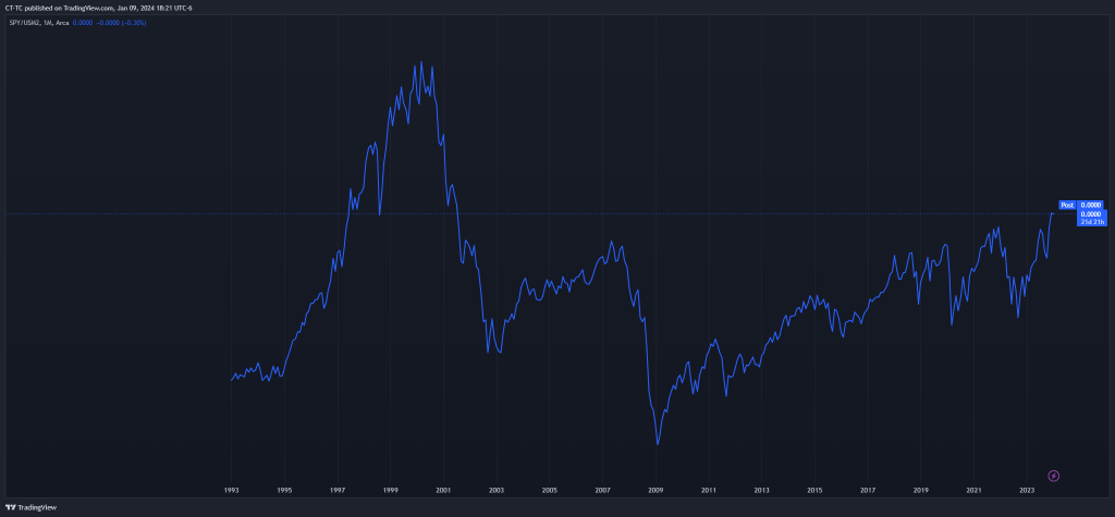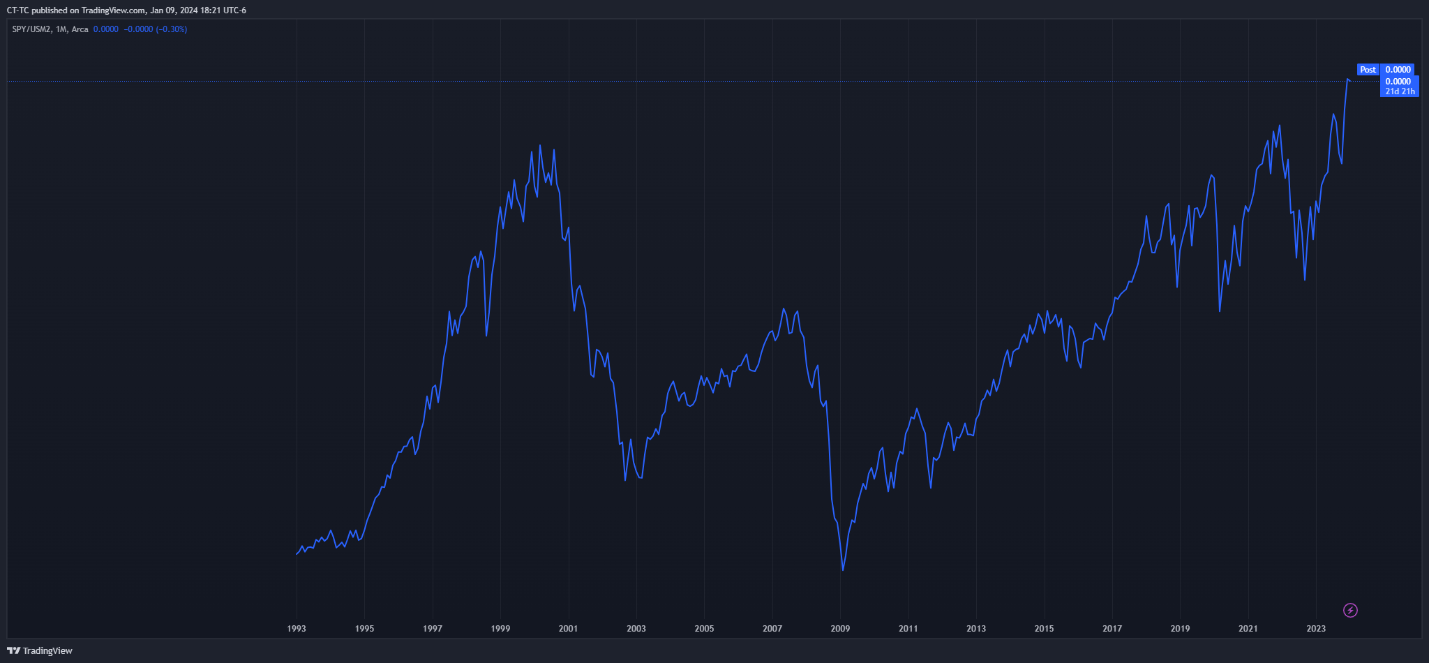 Take for example the chart below. In red we can see TQQQ. In blue we can see a simple 200 day moving average model applied to TQQQ. Which one has a higher rate of return? The obvious benefit of the technical analysis system is that it has a better max drawdown. That is a big win. Likewise, a system like that could prevent an even larger drawdown that the buy and hold would likely experience in a period like the dot com bust.